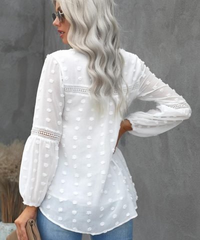 Brown Floral Long Sleeve High Neck Sheath Mesh Blouse