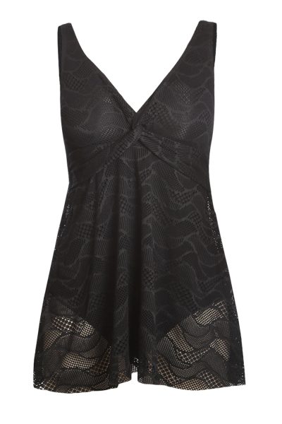 Aleksa Women’s Sexy V Neck Straps Sleeveless Ruched Twist Tankini Swimwear Set Black