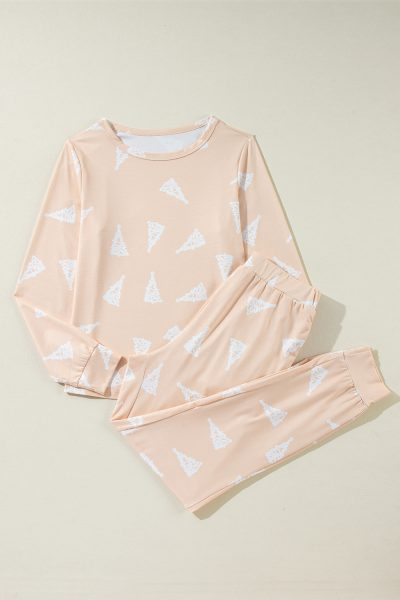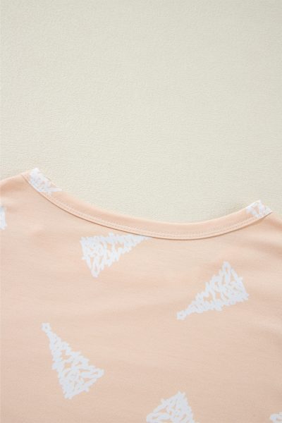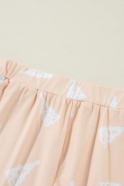 Apricot Christmas Tree Print Loose Fit Two Piece Pajama Set