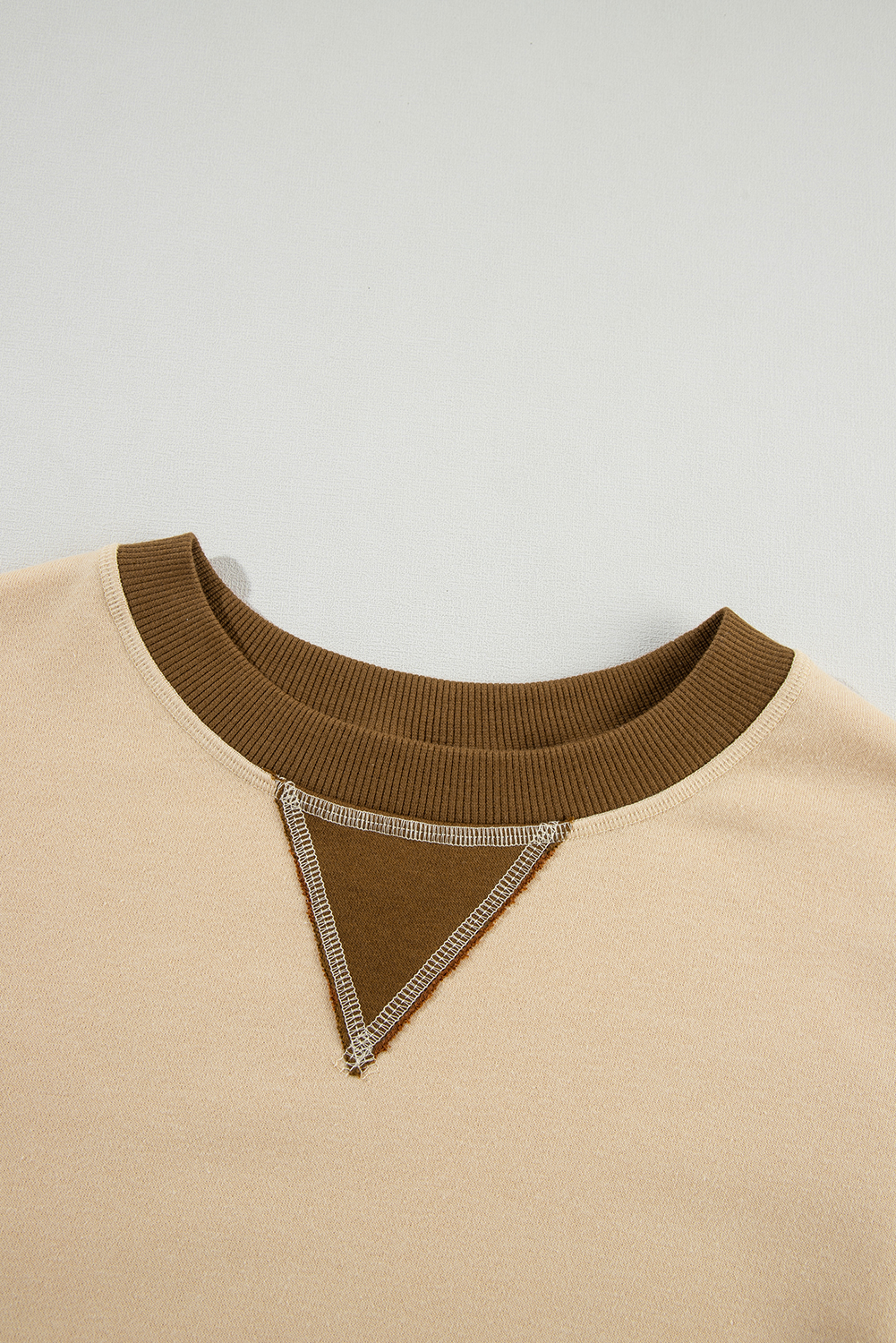 Apricot Color Block Thumbhole Sleeve Drop Shoulder Sweatshirt