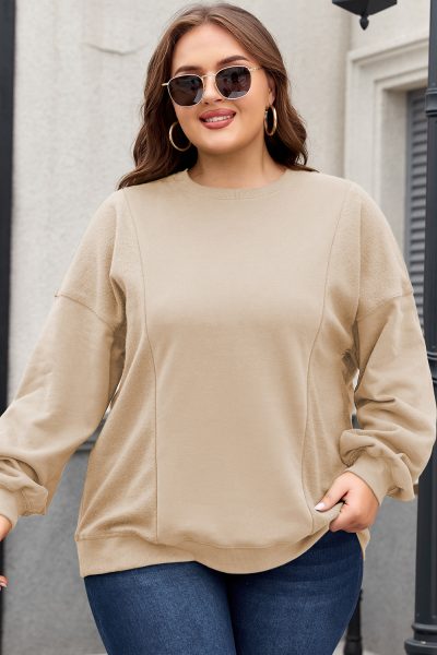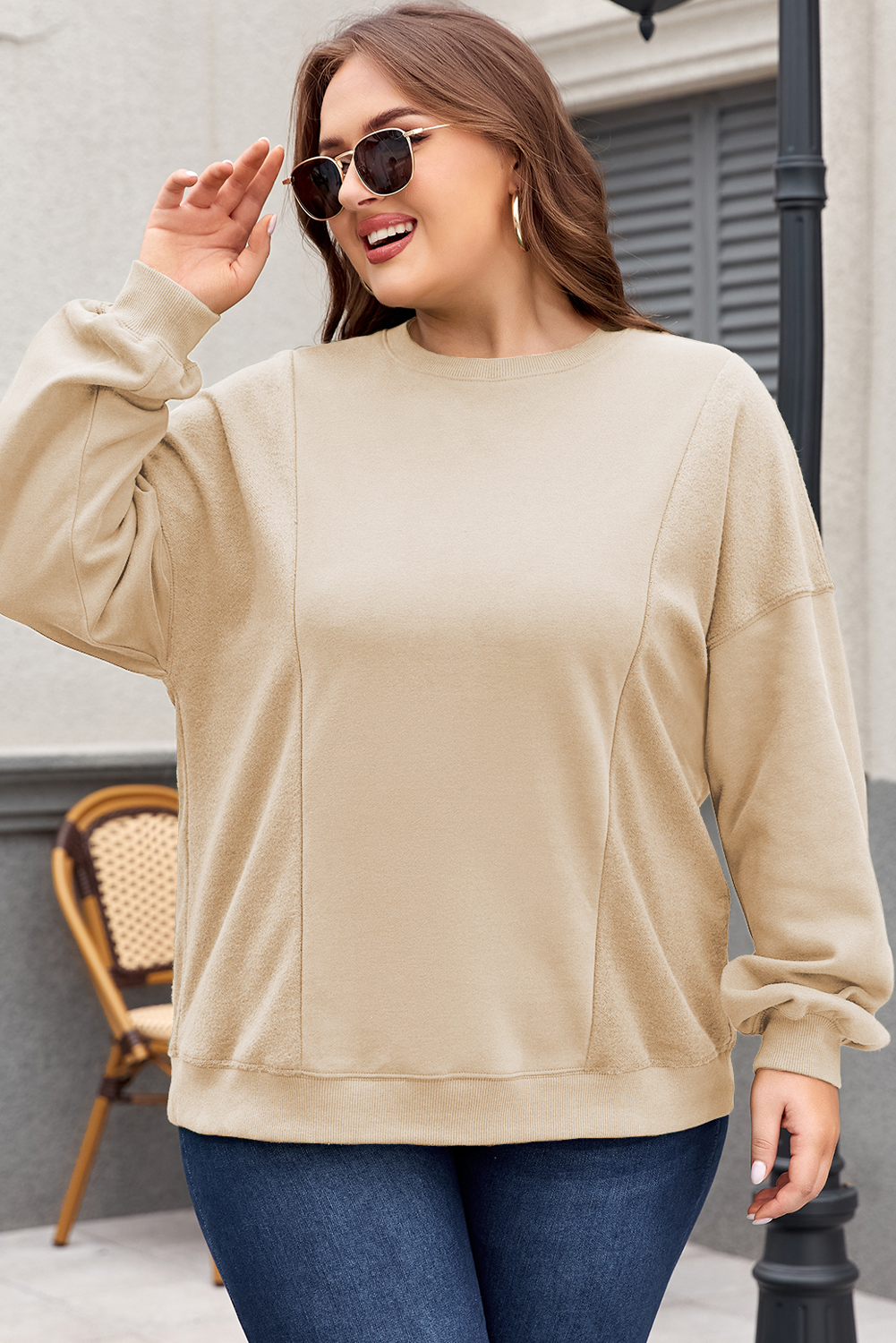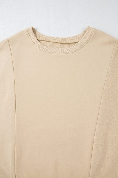 Apricot Loose Patchwork Crewneck Plus Size Sweatshirt
