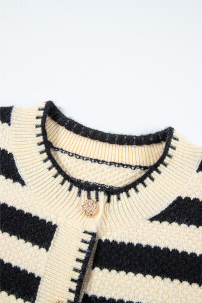 Apricot Stripe Chic Golden Button Cardigan Sweater