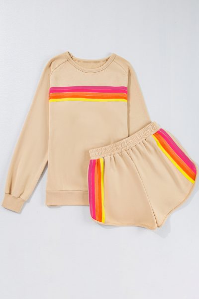 Apricot Striped Accent Pullover and Shorts Two Piece Casual Set