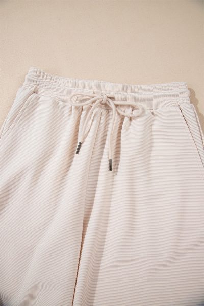 Apricot Textured Ruffled Sleeve Zipped Top and Wide Leg Pants Set