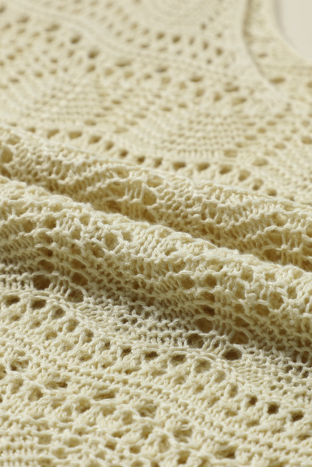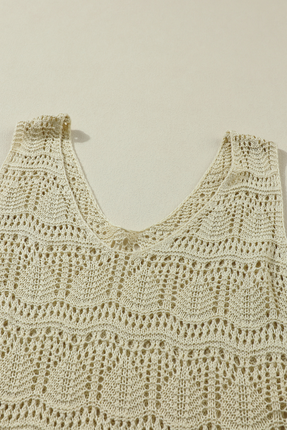 Apricot V Neck Textured Hollow-out Sweater Vest