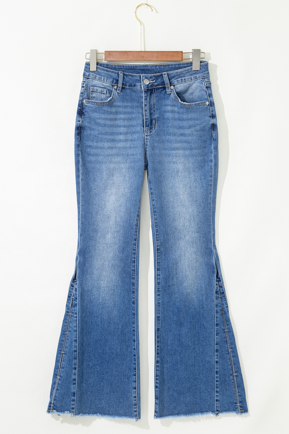 Ashleigh Blue Cut out Side Frayed Hemline Flare Jeans