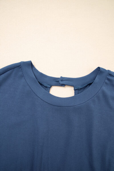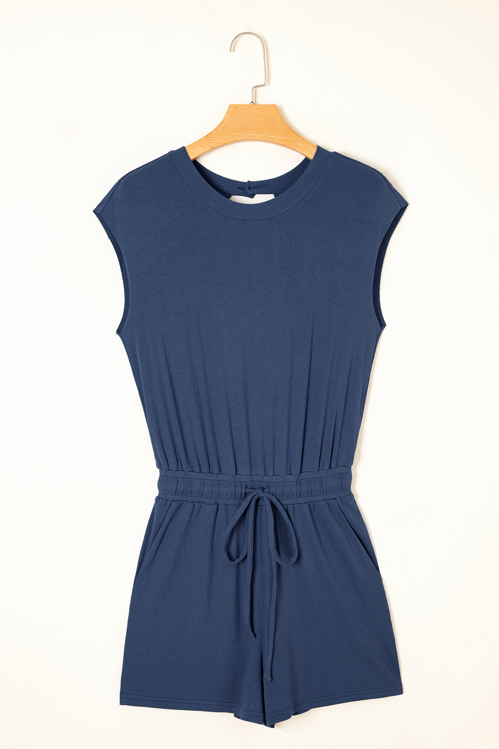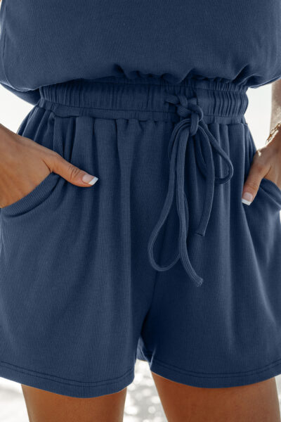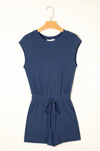 Ashleigh Blue Knit Open Back Cap Sleeve Drawstring Elastic Waistband Romper