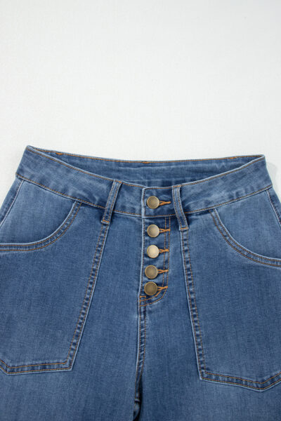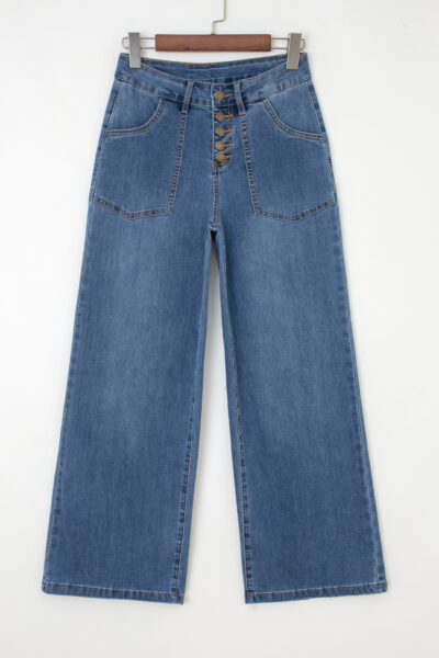 Ashleigh Blue Multi Buttons High Waist Wide Leg Jeans With Pockets