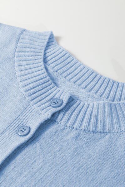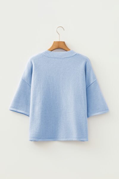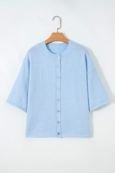 Beau Blue 3/4 Sleeve Boxy Knit Button Down Sweater Cardigan