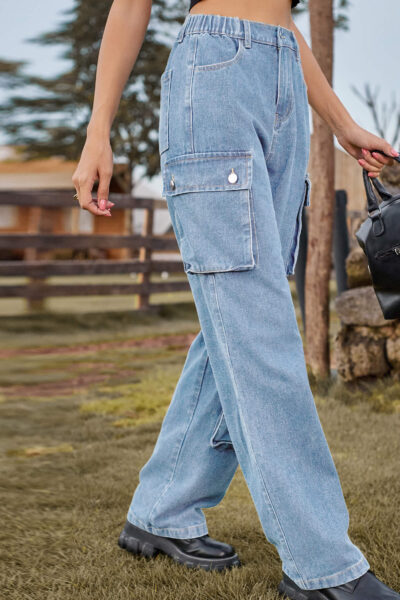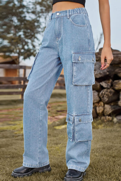 Beau Blue Asymmetric Pocket Denim Utility Cargo Pants