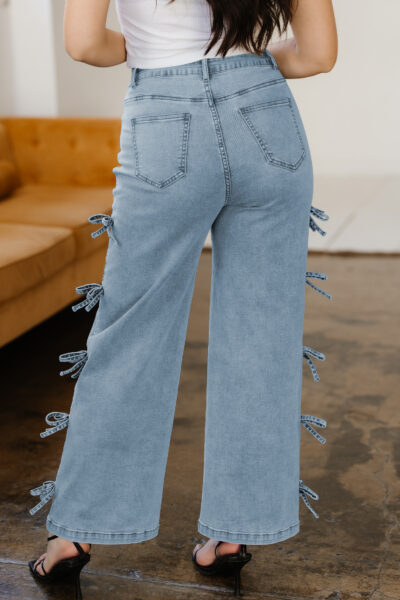 Beau Blue Bow Knot Side Detail Straight Leg Loose Jeans