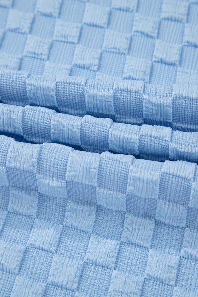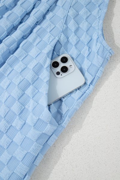 Beau Blue Checkered Pocketed High Waist Wide Leg Overall