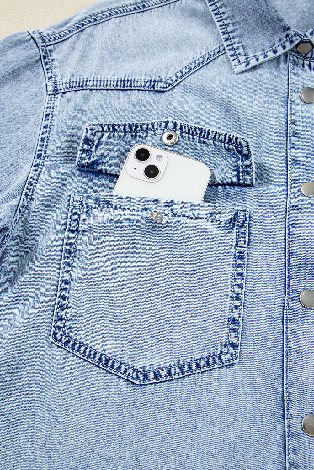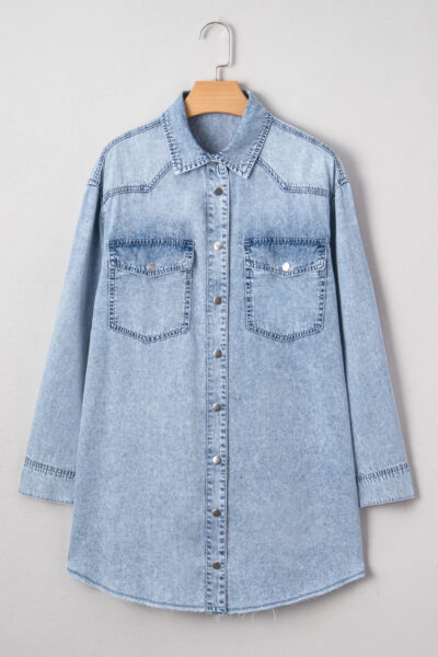 Beau Blue Chest Pocket Raw Hem Denim Loose Shirt Dress