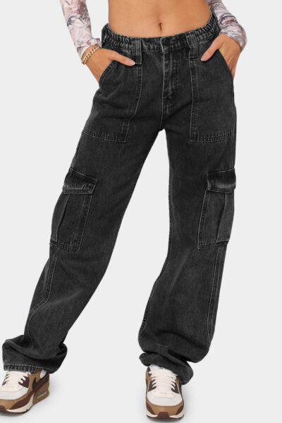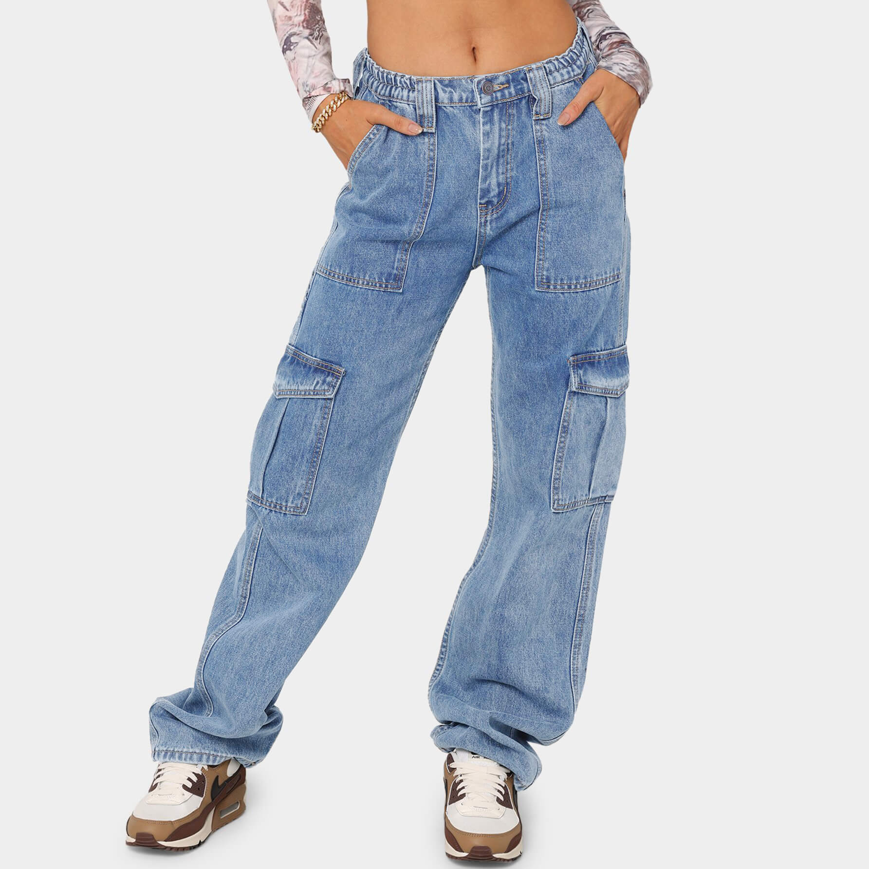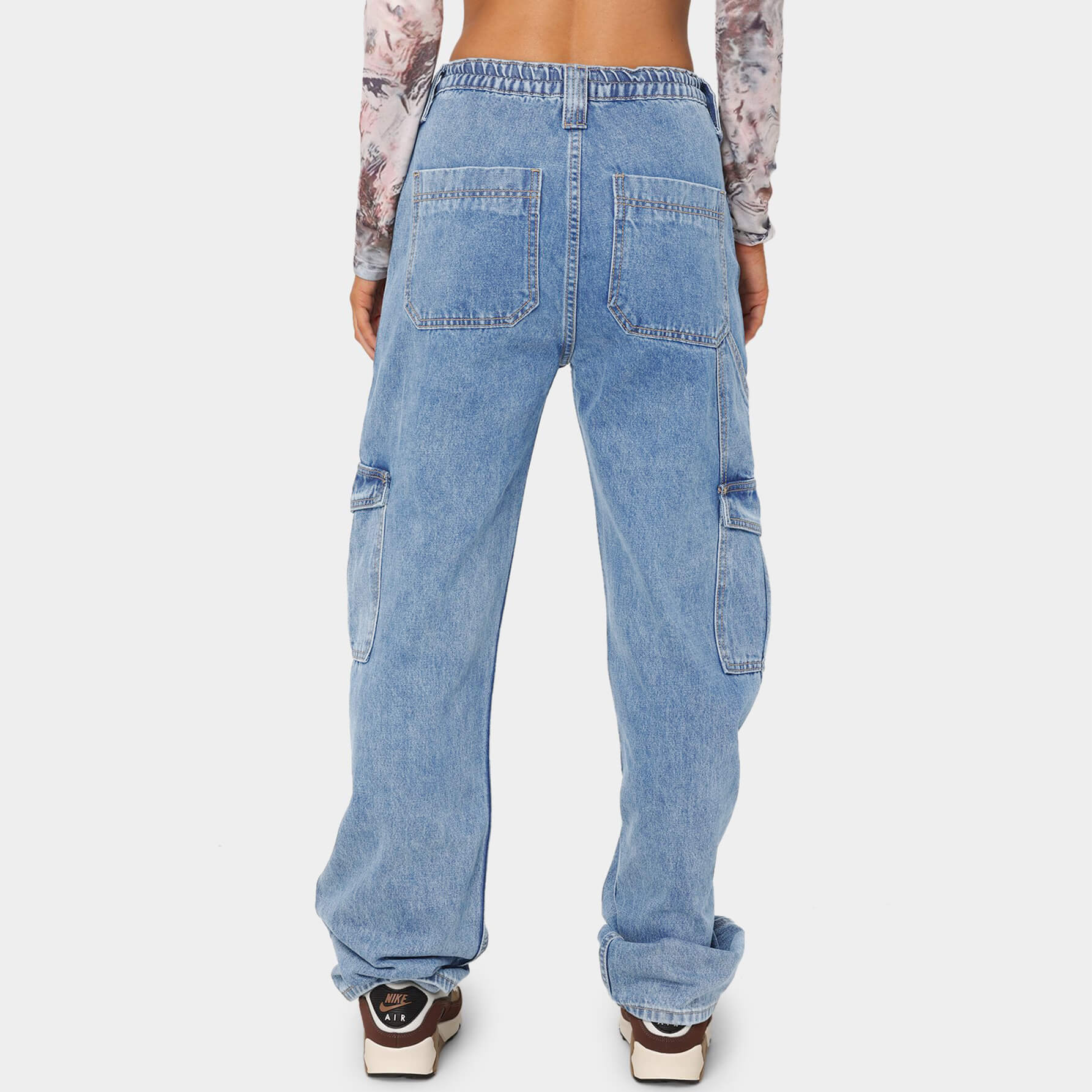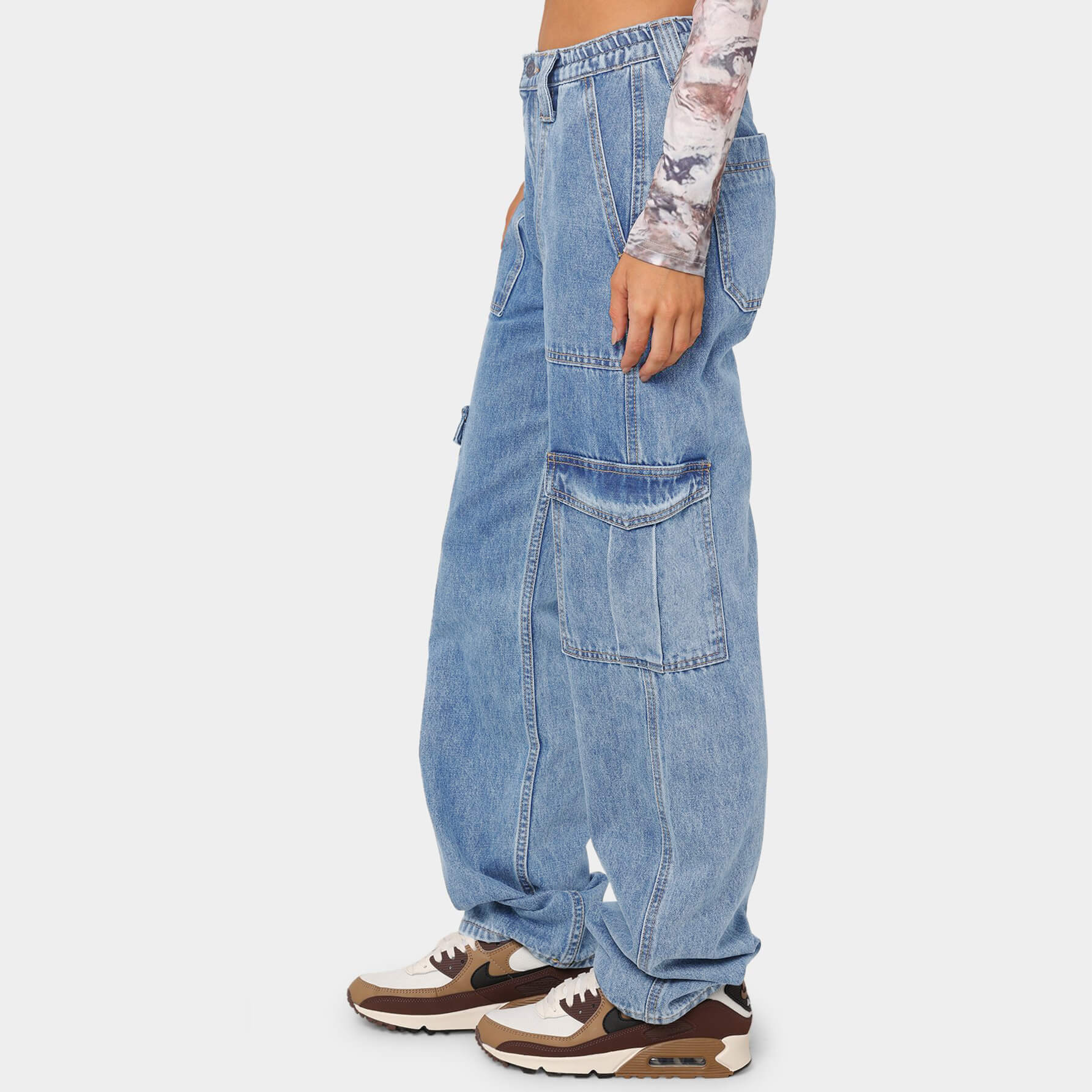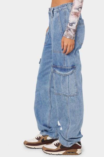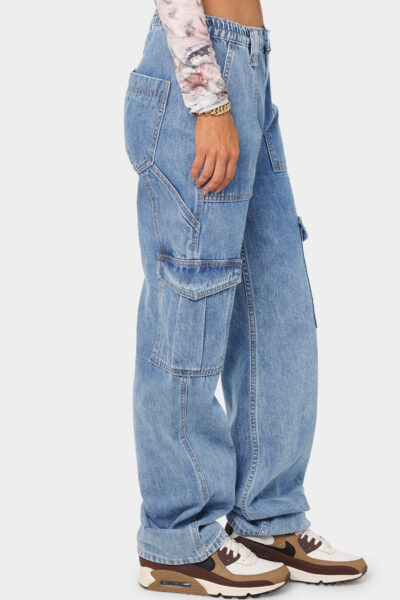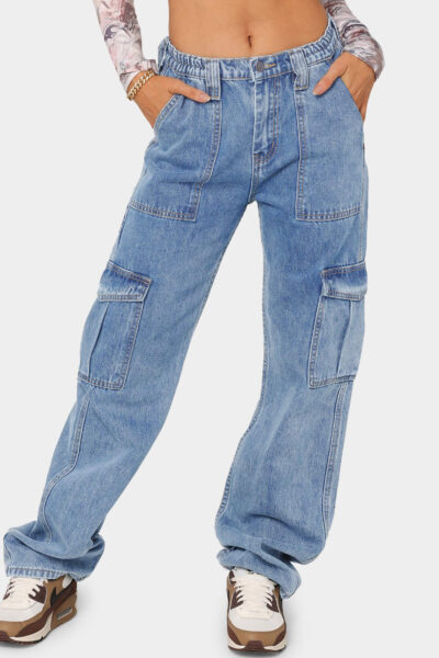 Beau Blue Denim Utility Pants with Partial Elastic Waist