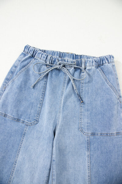 Beau Blue Drawstring Seam Detail Raw Hem Wide Leg Denim Pants