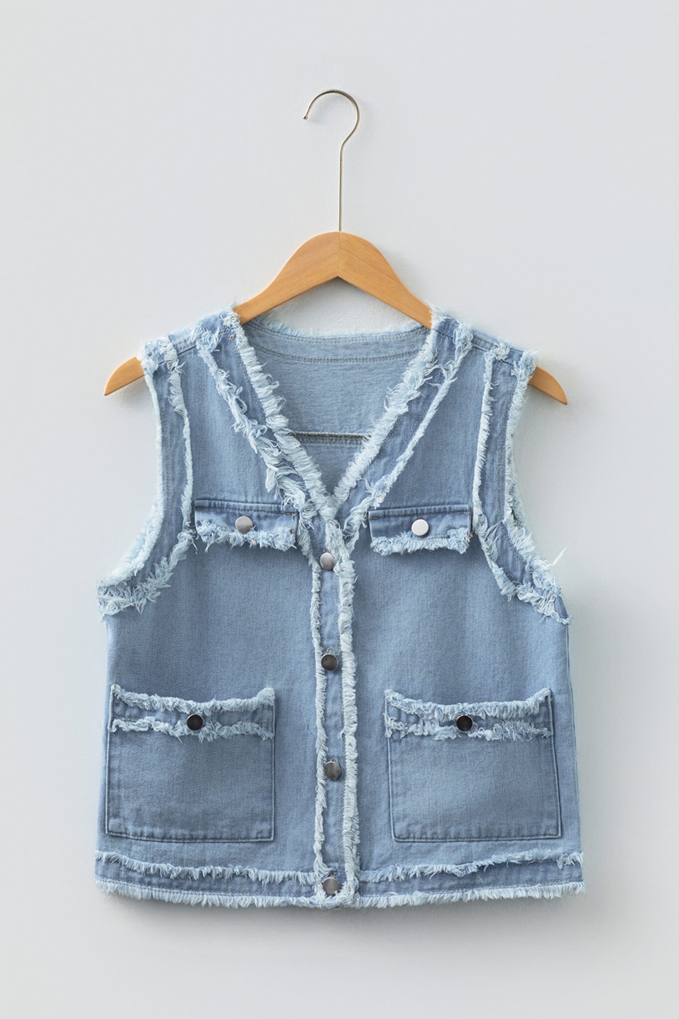 Beau Blue Frayed Edge Flap Pockets Denim Vest Jacket