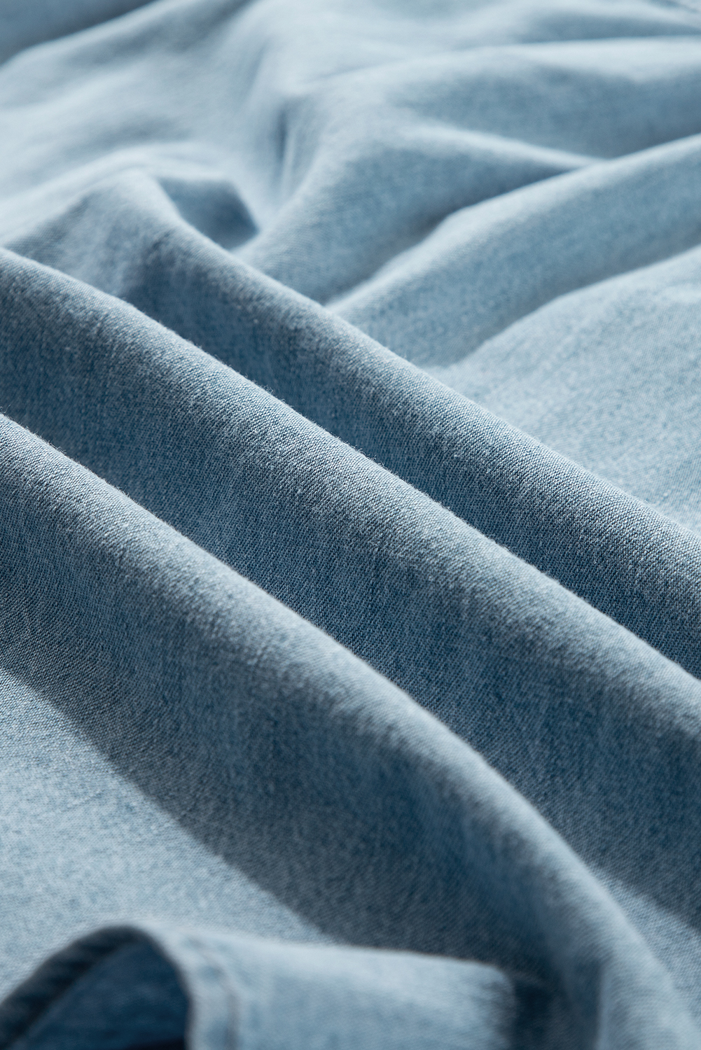 Beau Blue Frilly Ruffle Trim V Neck Chambray Tank Top