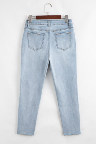 Beau Blue Mid Rise Ankle-Length Distressed Skinny Jeans