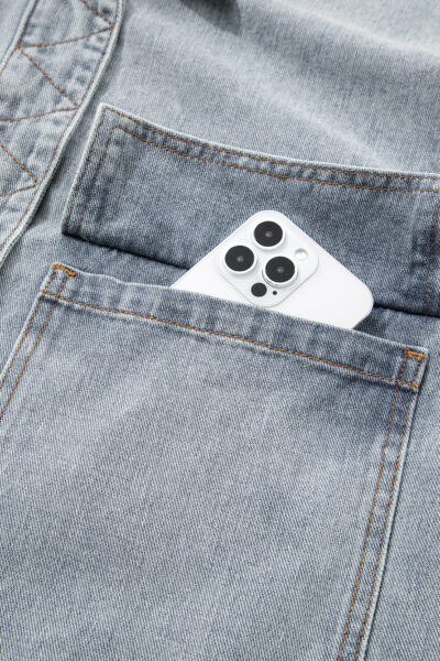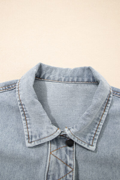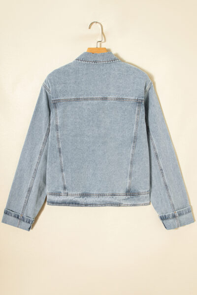 Beau Blue Street Style Zip Up Washed Denim Jacket