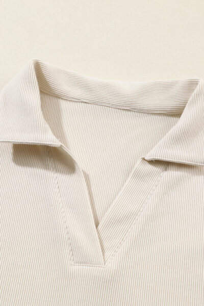 Beige Collared Split Neck Ribbed 2pcs Athleisure Outfit