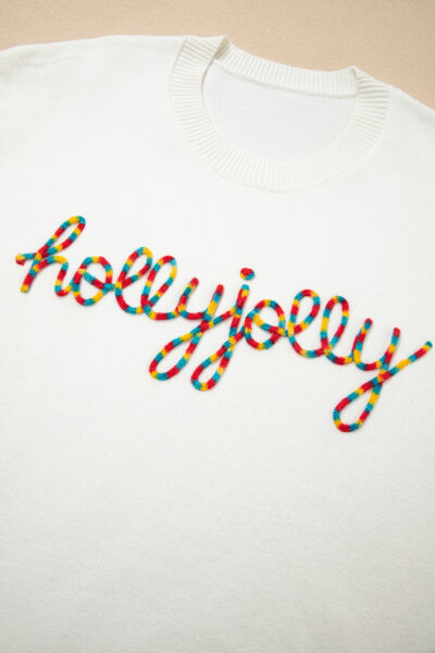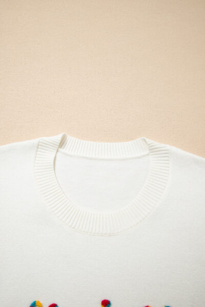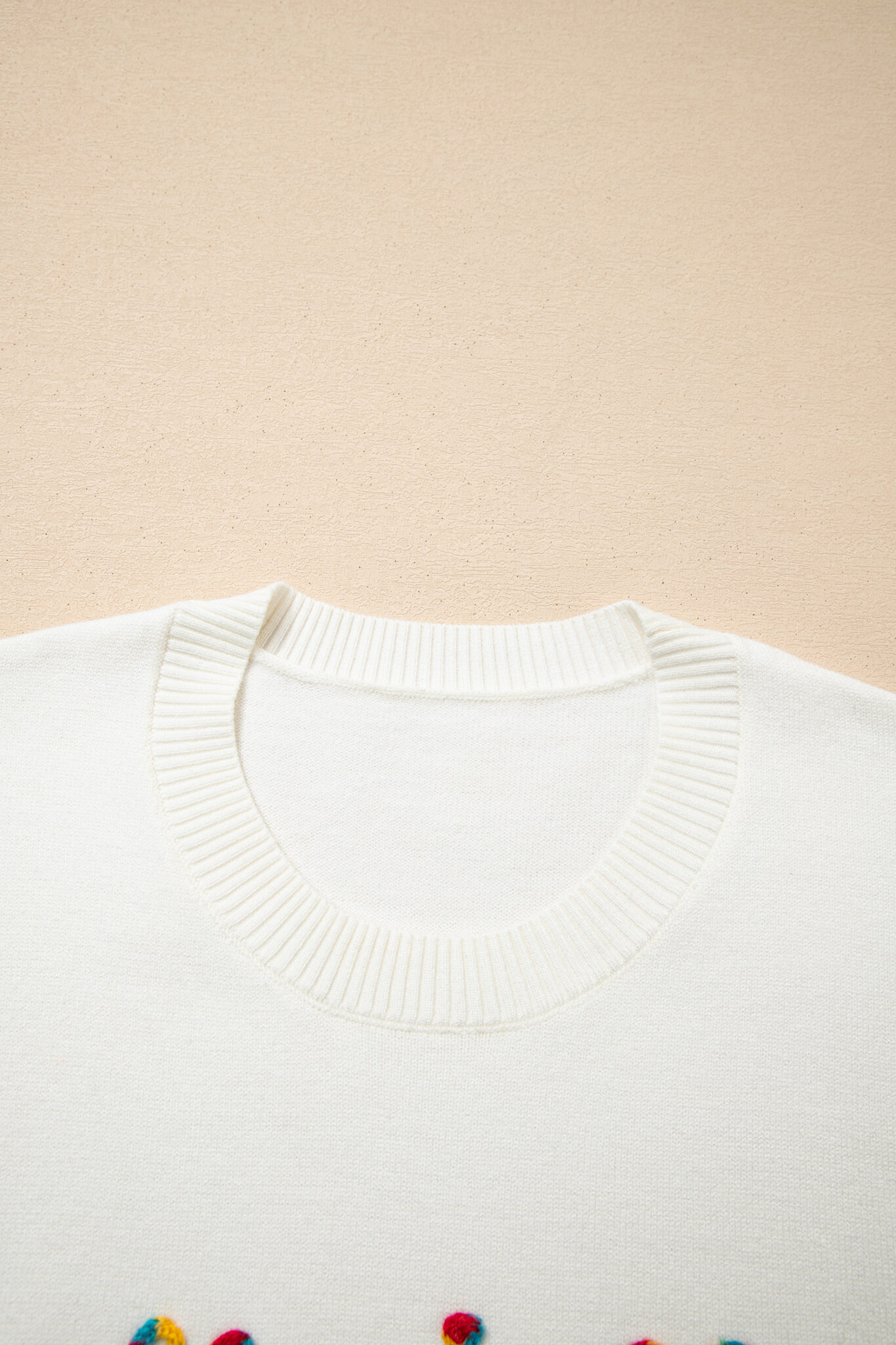 Beige Colorful Holly Jolly Christmas Knit Loose Sweater