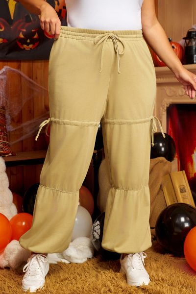 Beige Drawstring Adjusted Band High Waist Plus Size Pants