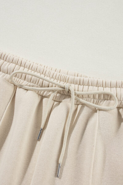 Beige Drop Shoulder Zip Up Jacket Drawstring Pants Active 2pcs Set
