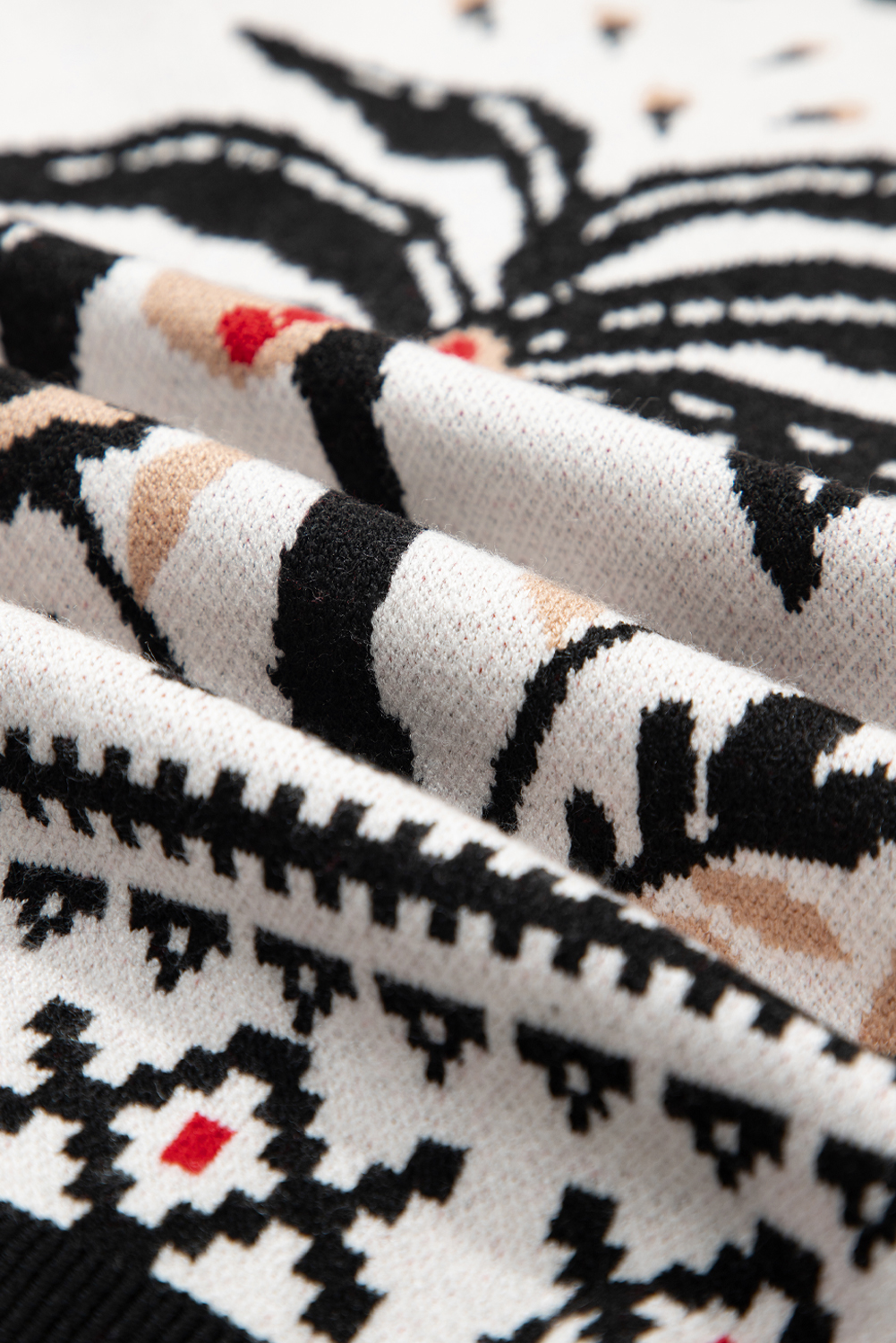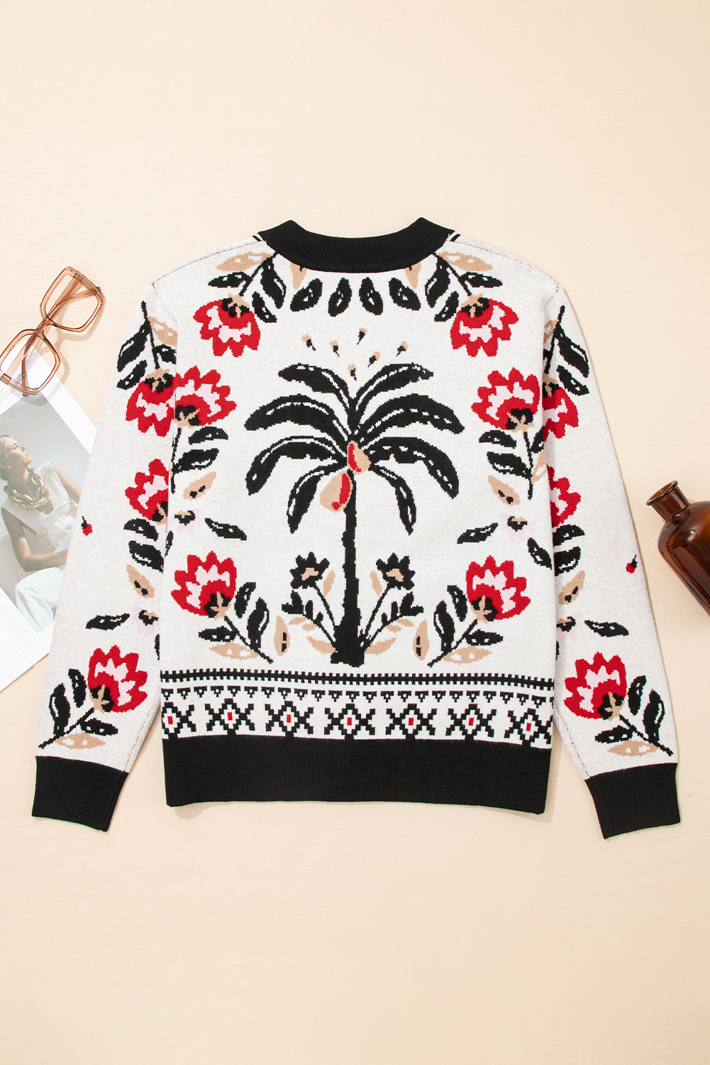 Beige Floral Print Buttoned Front V Neck Knit Cardigan