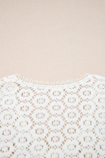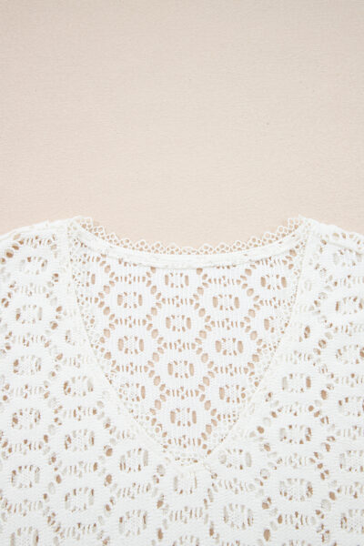 Beige Flower Lace V Neck Ruffled Sleeve Top