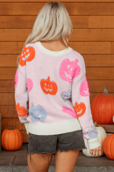 Beige Halloween Cute Pumpkin Pattern Sweater