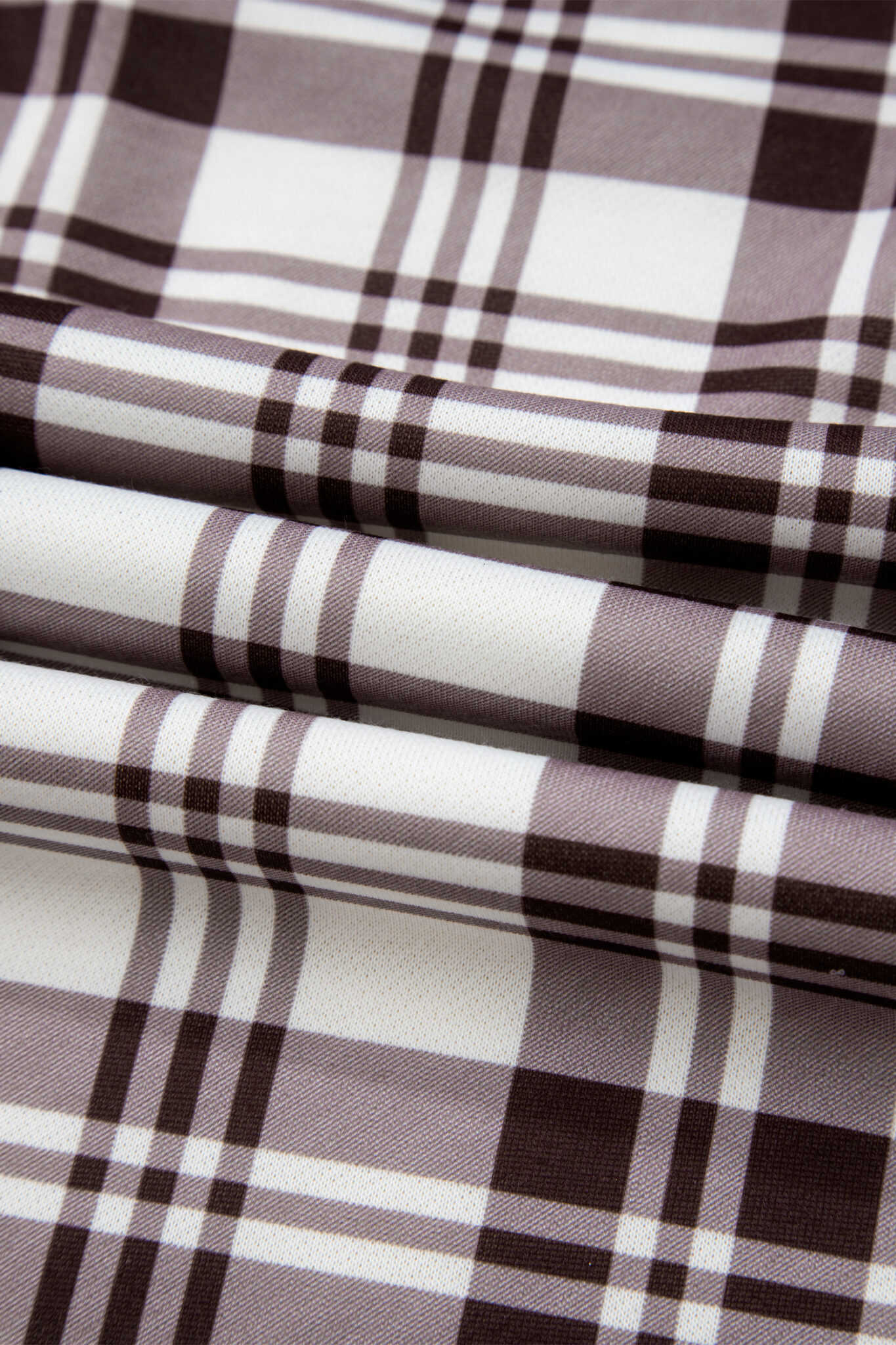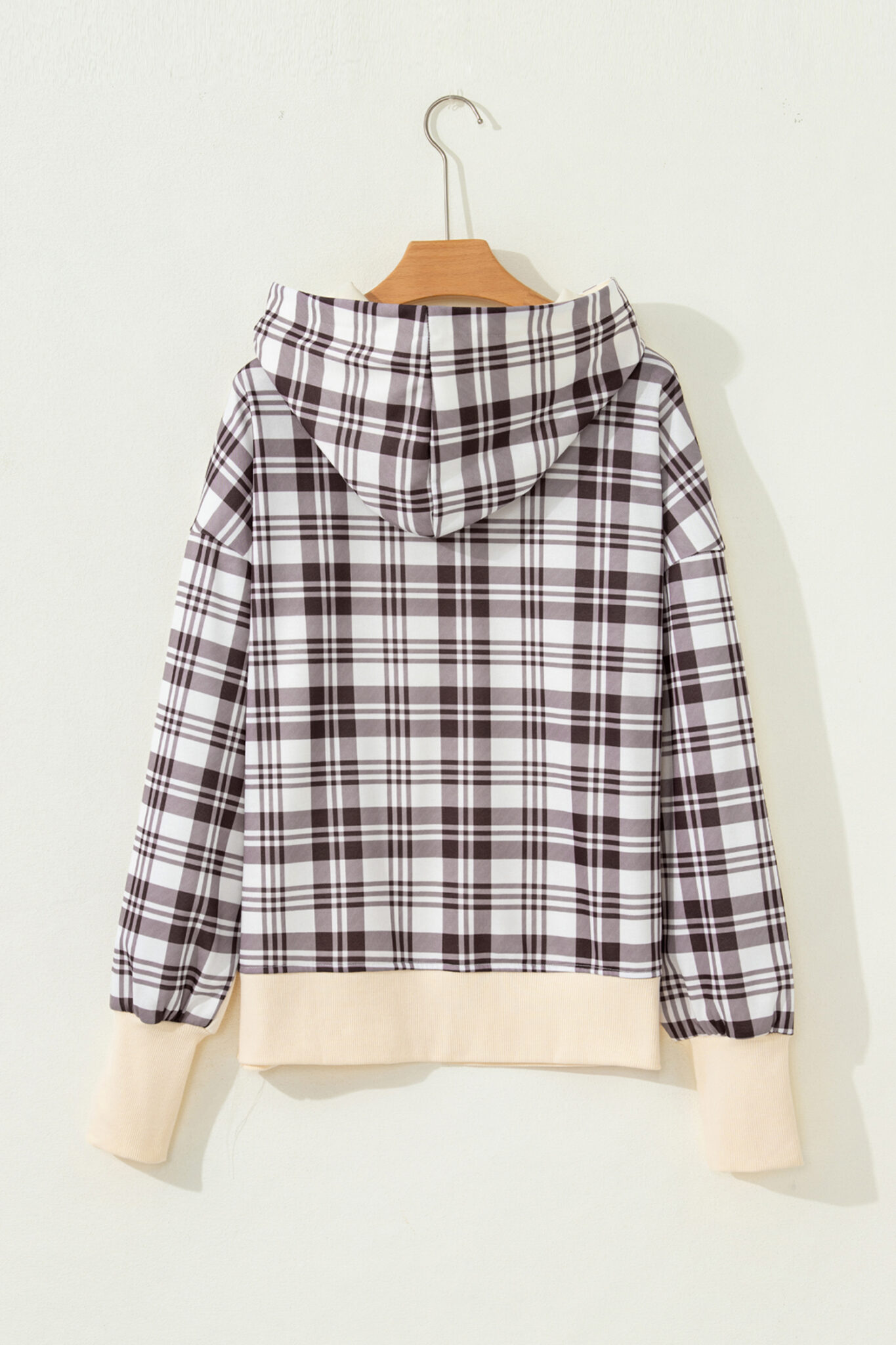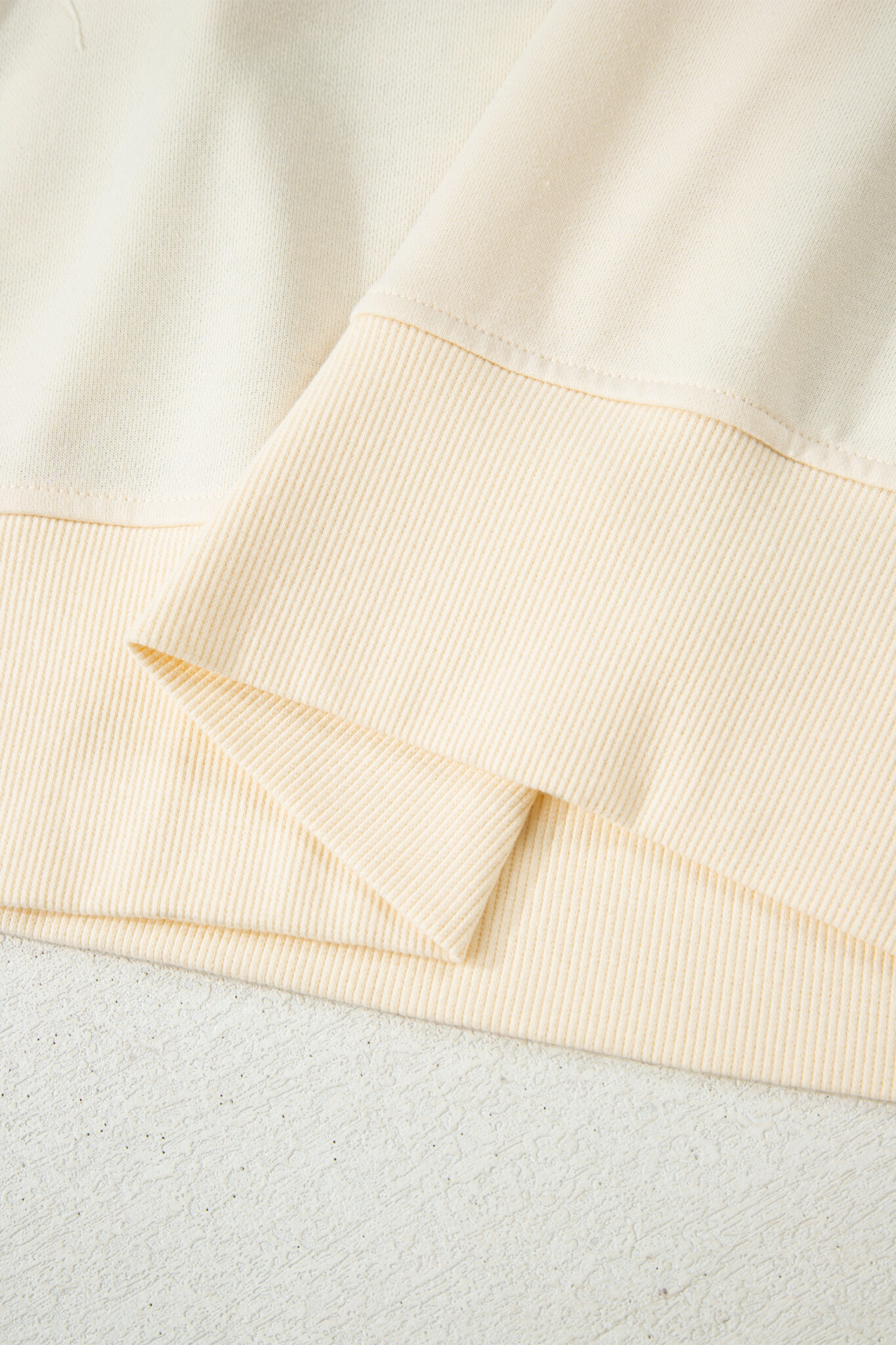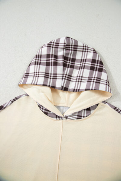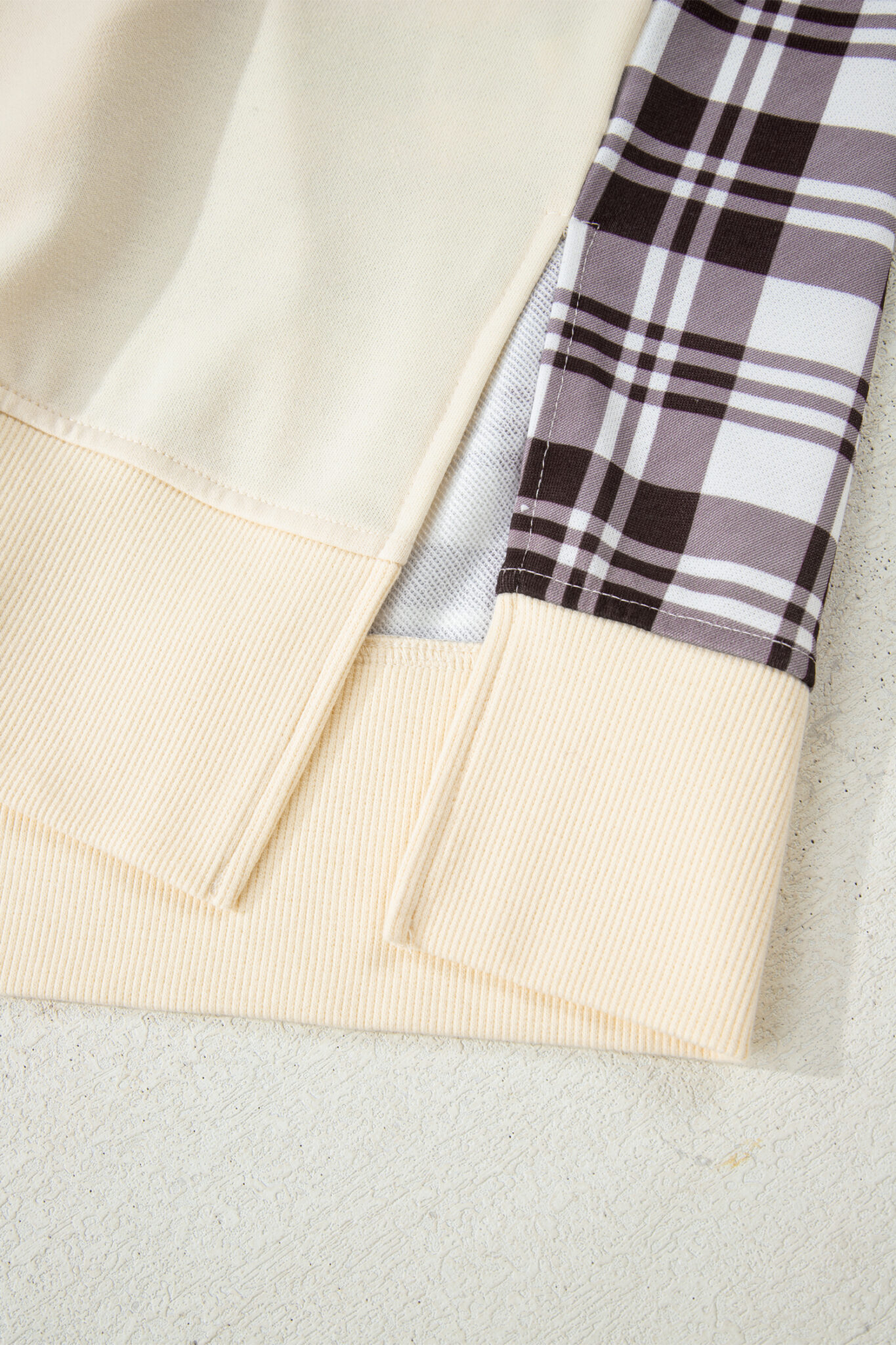 Beige Plaid Patchwork Side Slit Sweatshirt