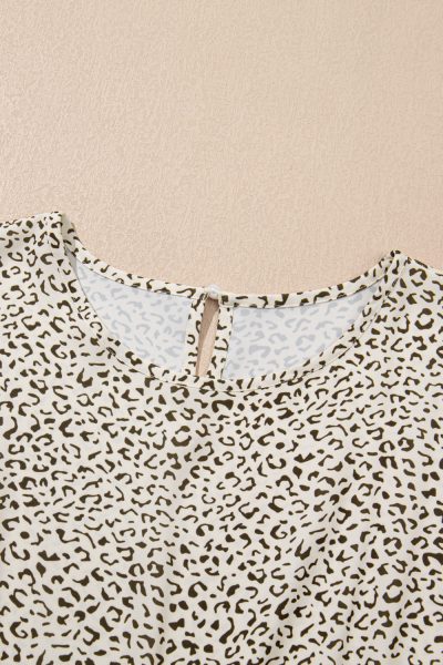 Beige Plus Size Leopard Print Frill Trim Short Sleeve Flared Dress