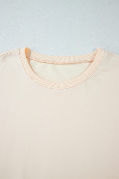 Beige Plus Size Printed Patchwork Sleeve Split Sweatshirt