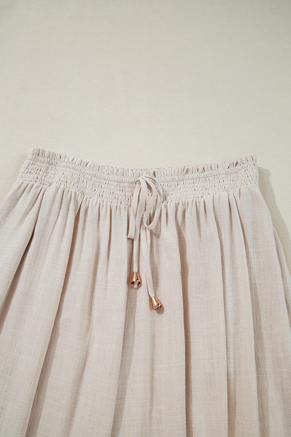 Beige Smocked High Waist Wide Leg Plus Size Pants