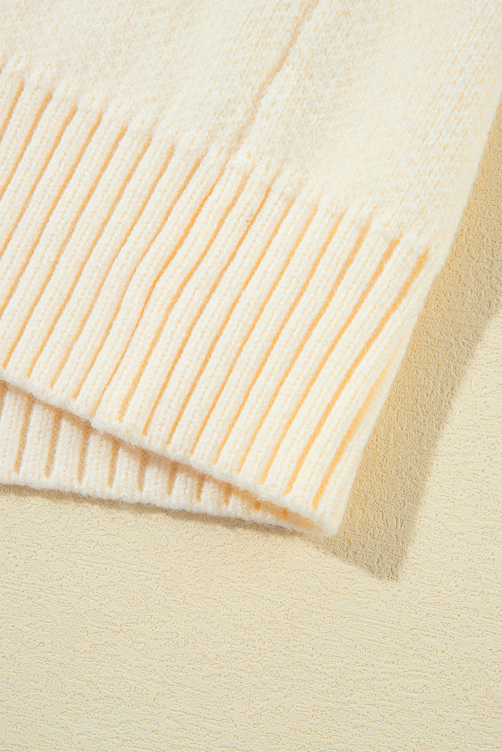 Beige Solid Color Knit Lapel Collar Single Button Sweater Cardigan