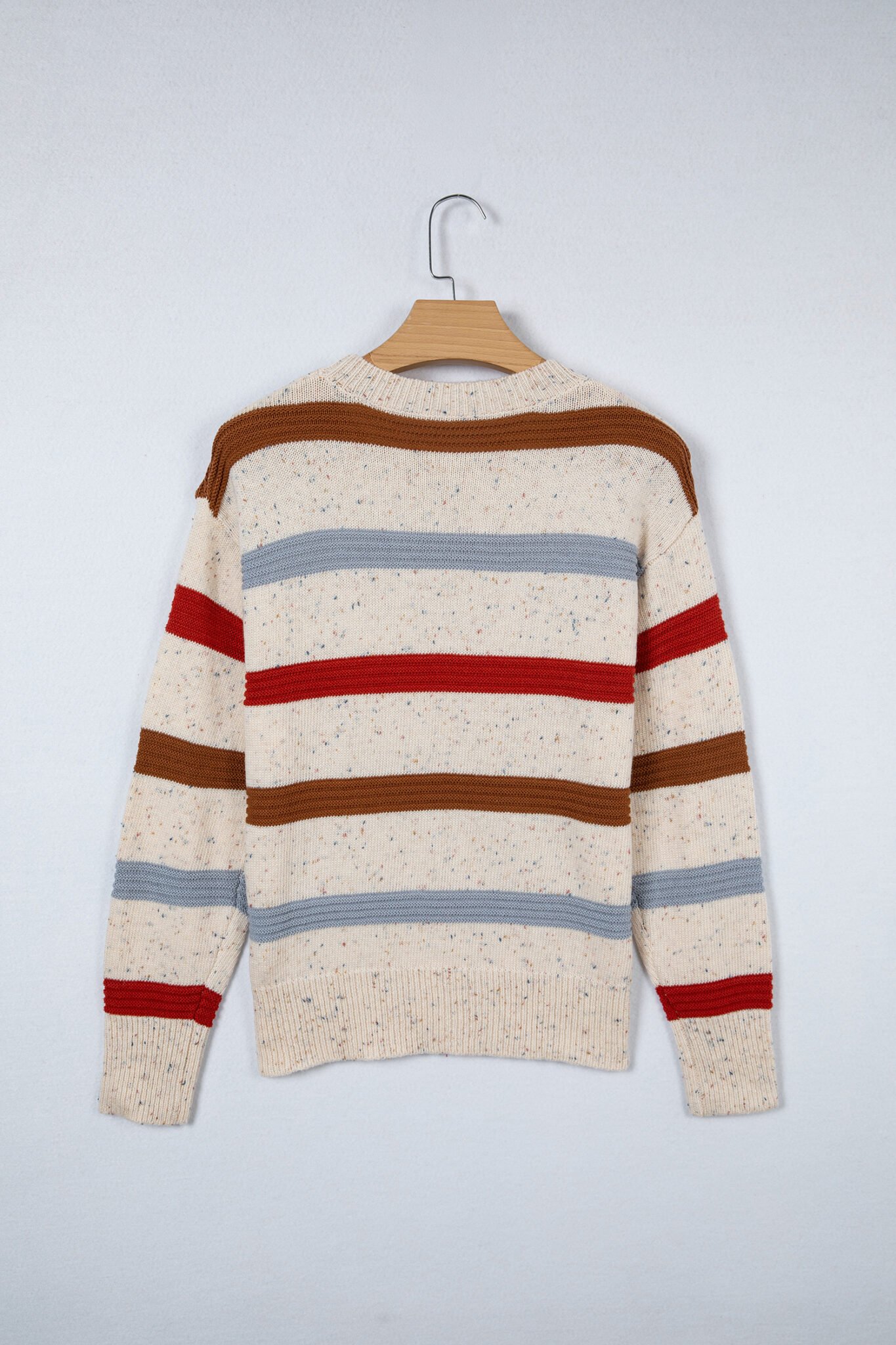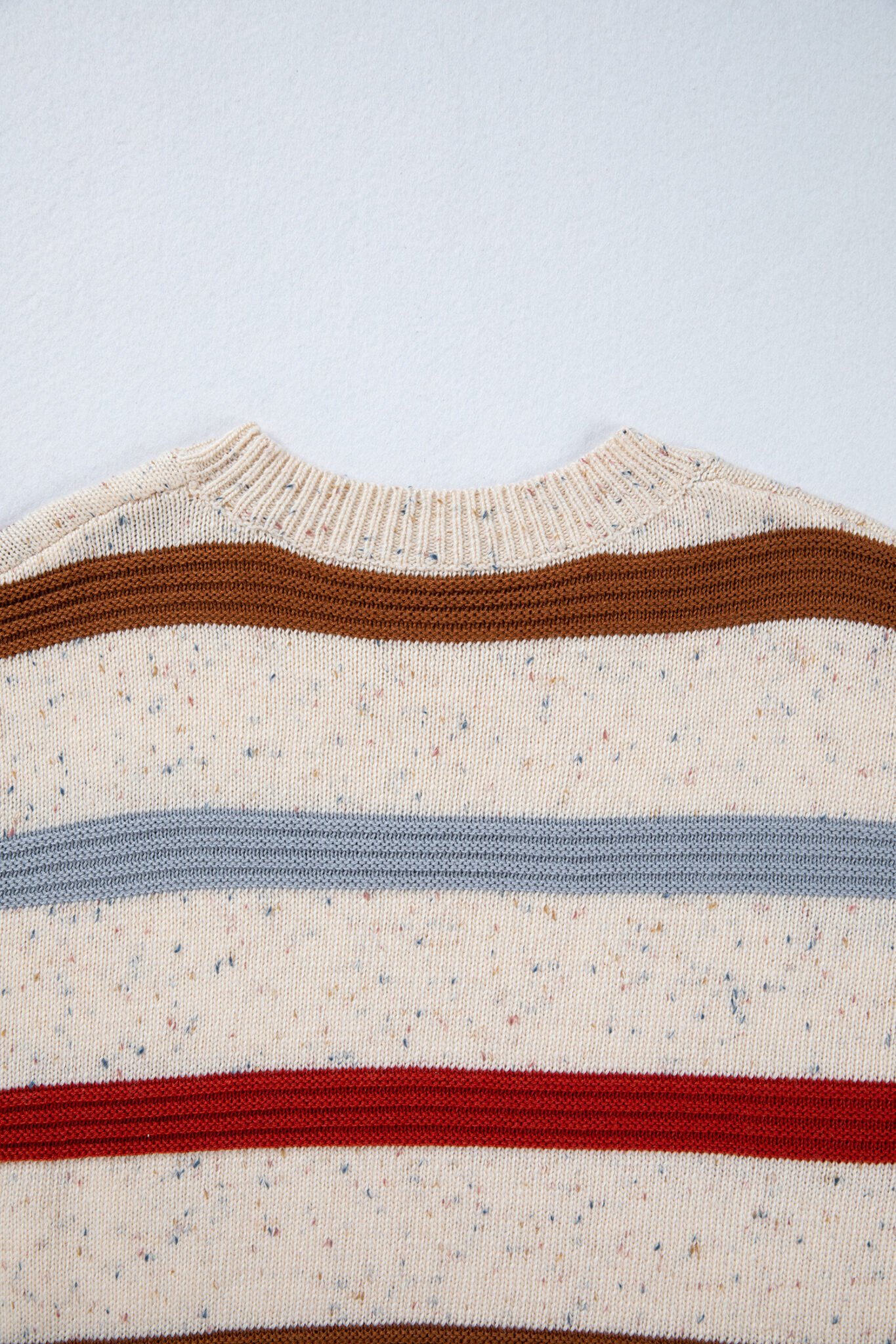 Beige Stripe Exposed Seam Drop Shoulder Heathered Knit Sweater