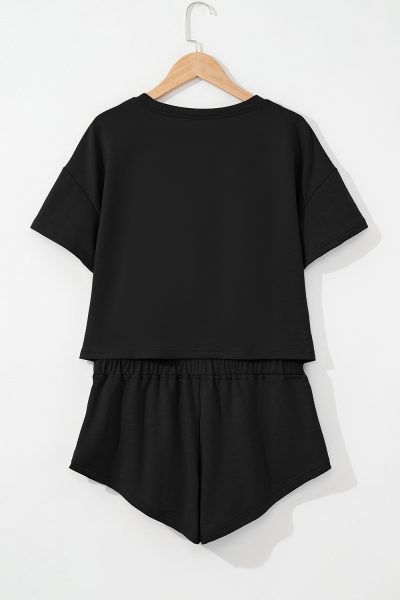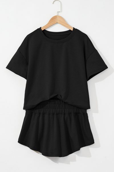 Black 2pcs Cropped Tee and Ruffle High Waist Skort Set