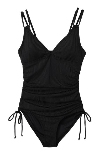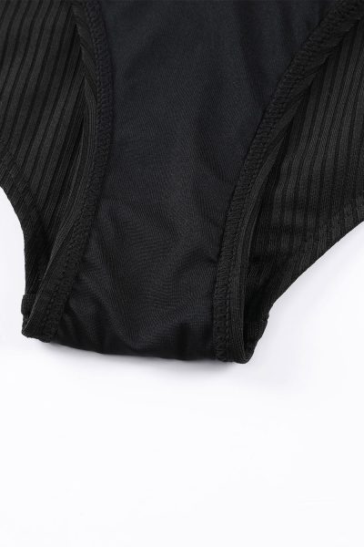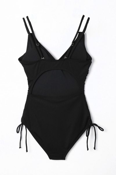 Black Adjustable Straps Ribbed Knit One Piece Swimsuit