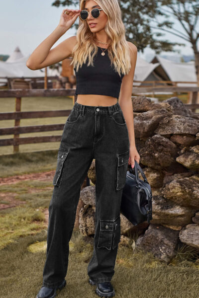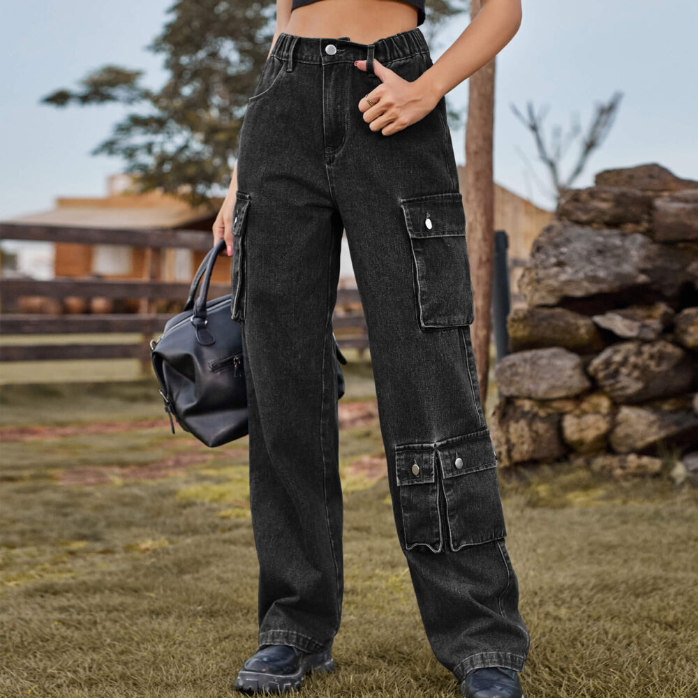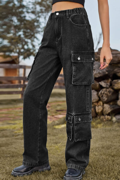 Black Asymmetric Pocket Denim Utility Cargo Pants