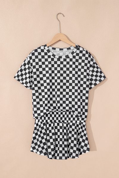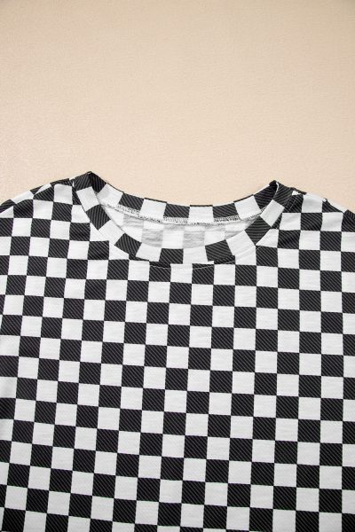 Black Checkerboard T Shirt and High Waist Skorts 2 Piece Outfit