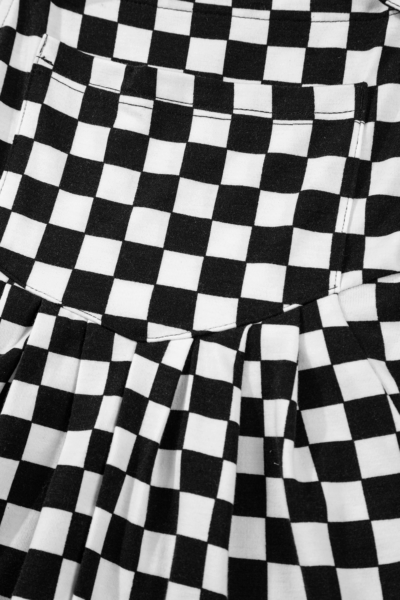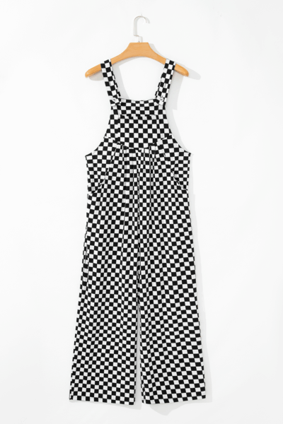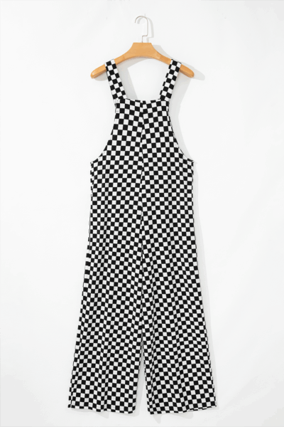 Black Checkered Print Pocketed Wide Leg Jumpsuit