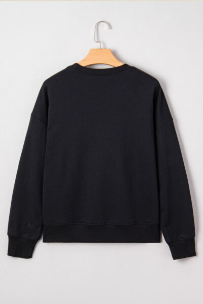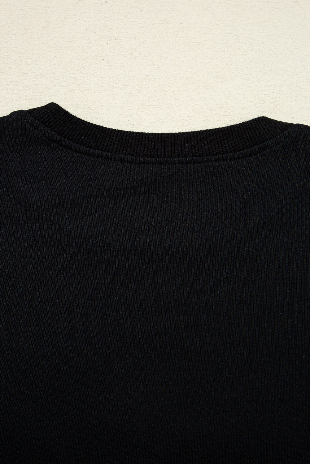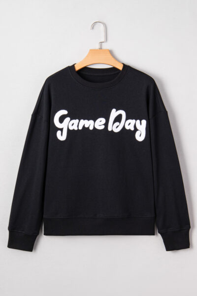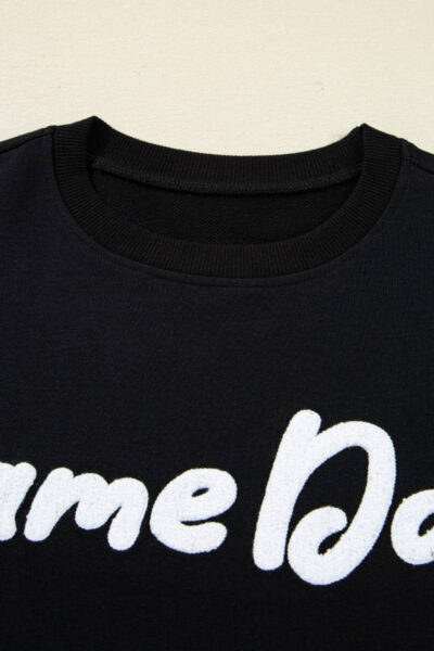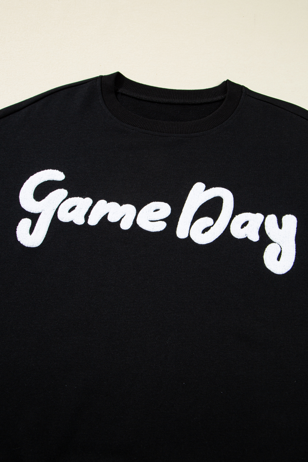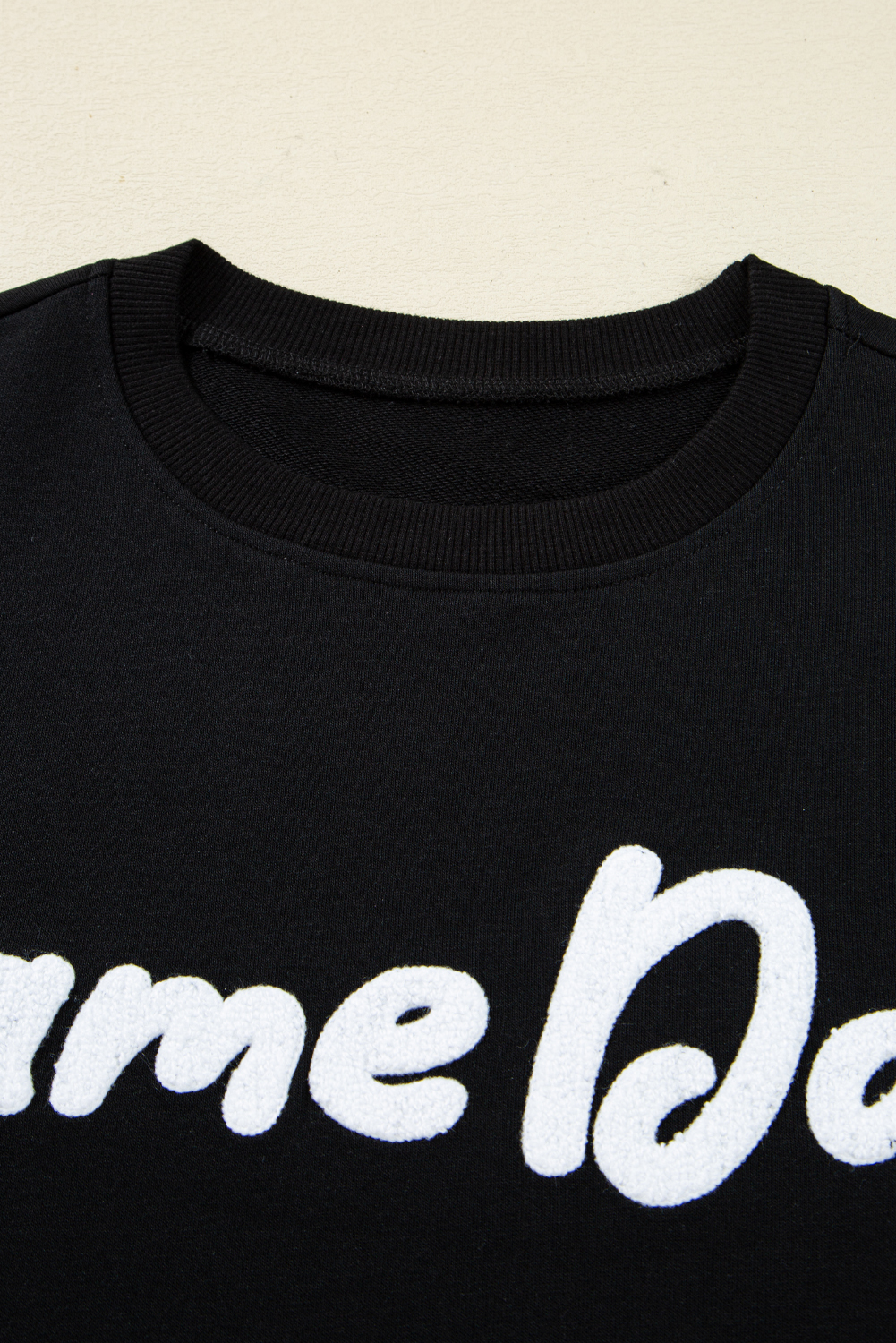 Black Chenille Game Day Graphic Drop Shoulder Sweatshirt