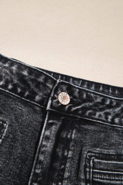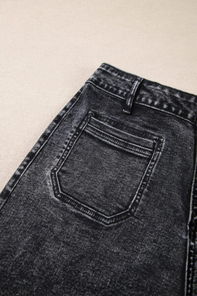 Black Chic Patch Pocket Straight Leg Loose Jeans