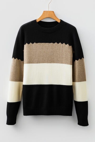Black Colorblock Crew Neck Drop Shoulder Sweater