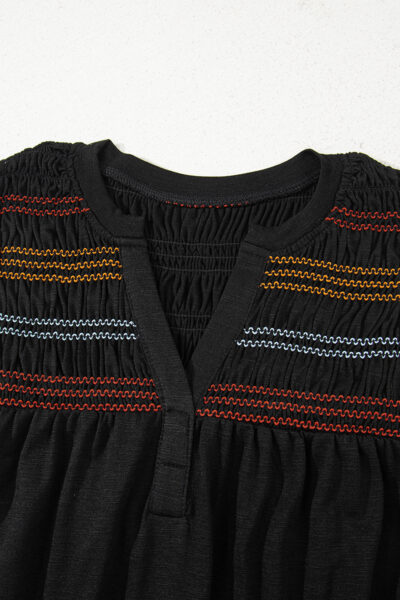 Black Colorful Shirred Yoke Notched V Neck Tank Top