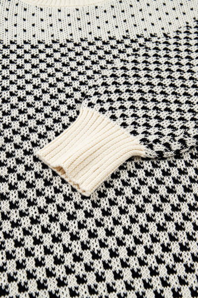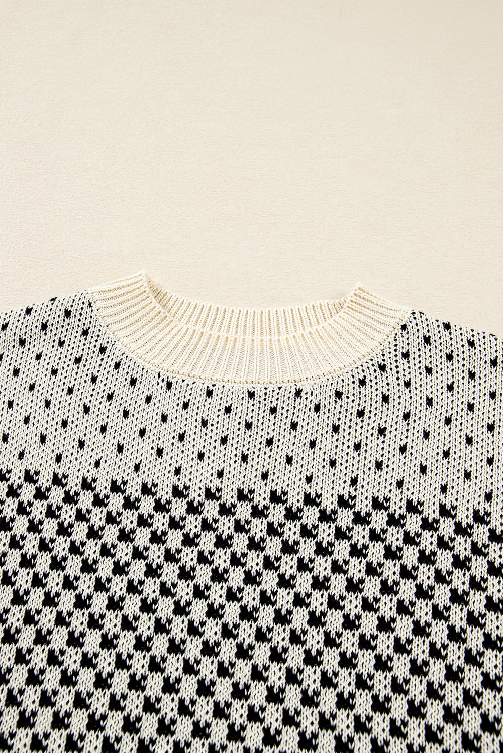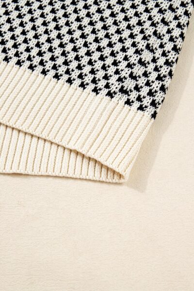 Black Contrast Color Pattern Lantern Sleeve Sweater