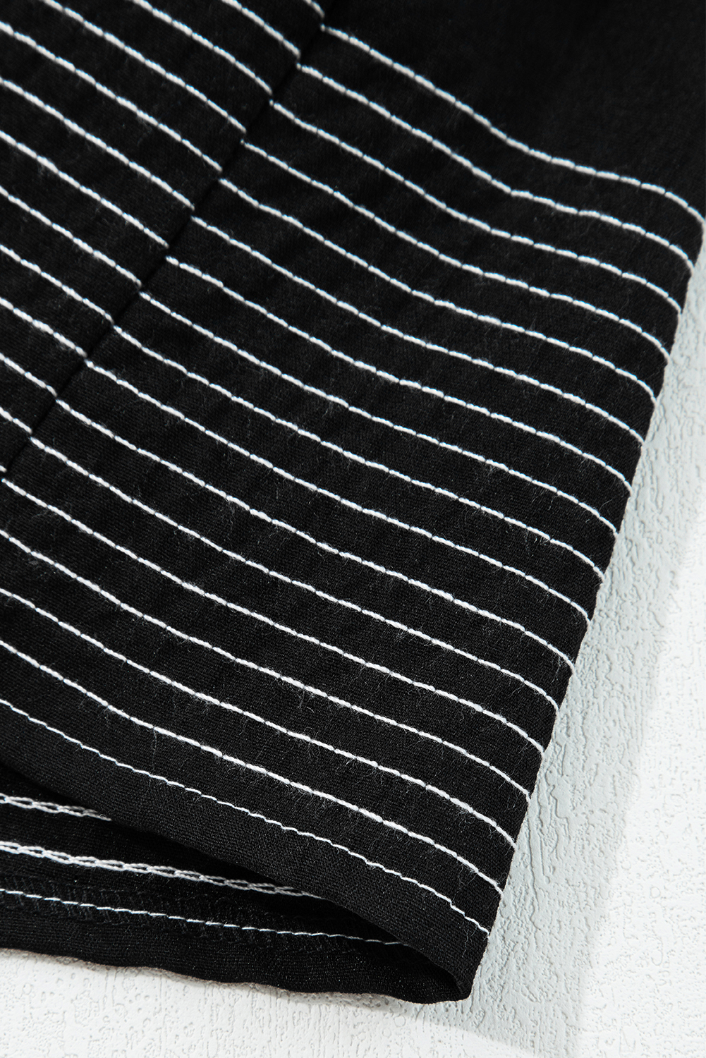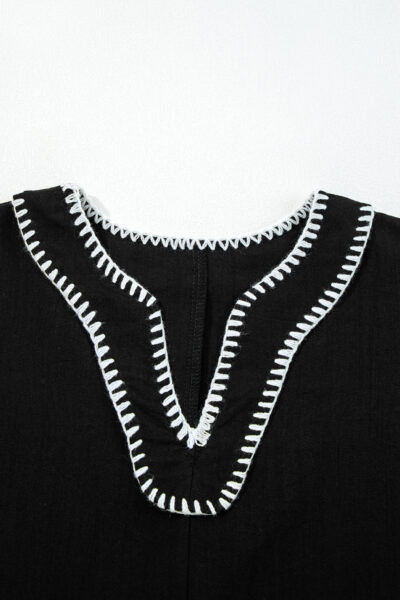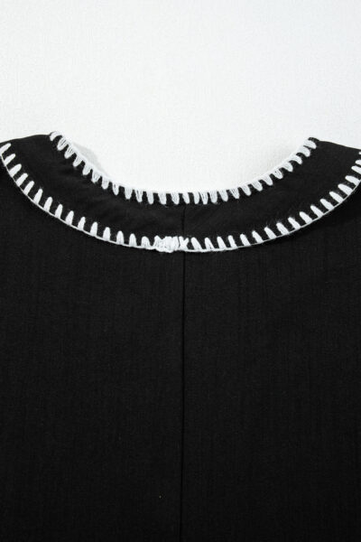 Black Contrast Stitched V Neck 3/4 Sleeve Tiered Mini Dress