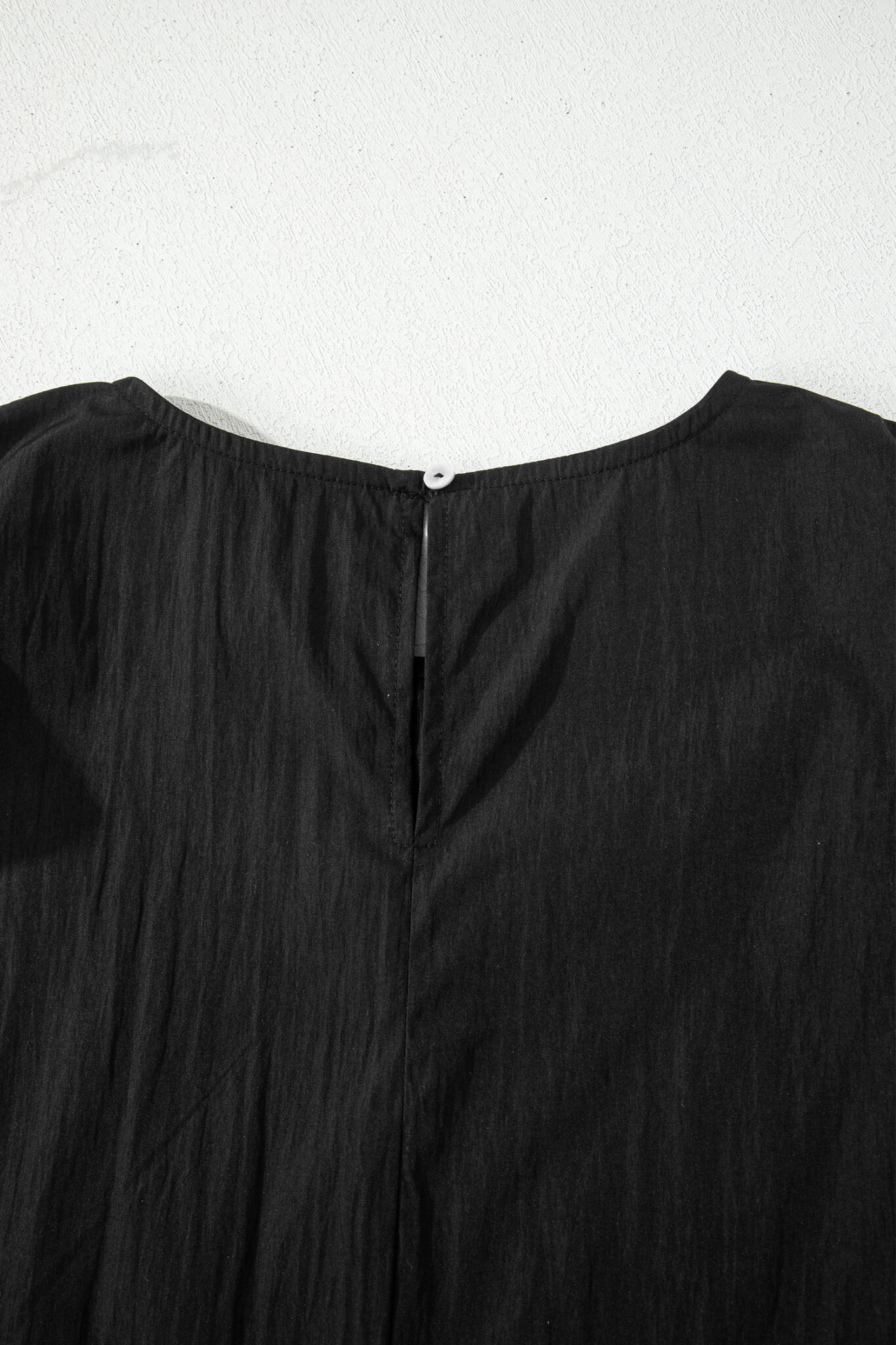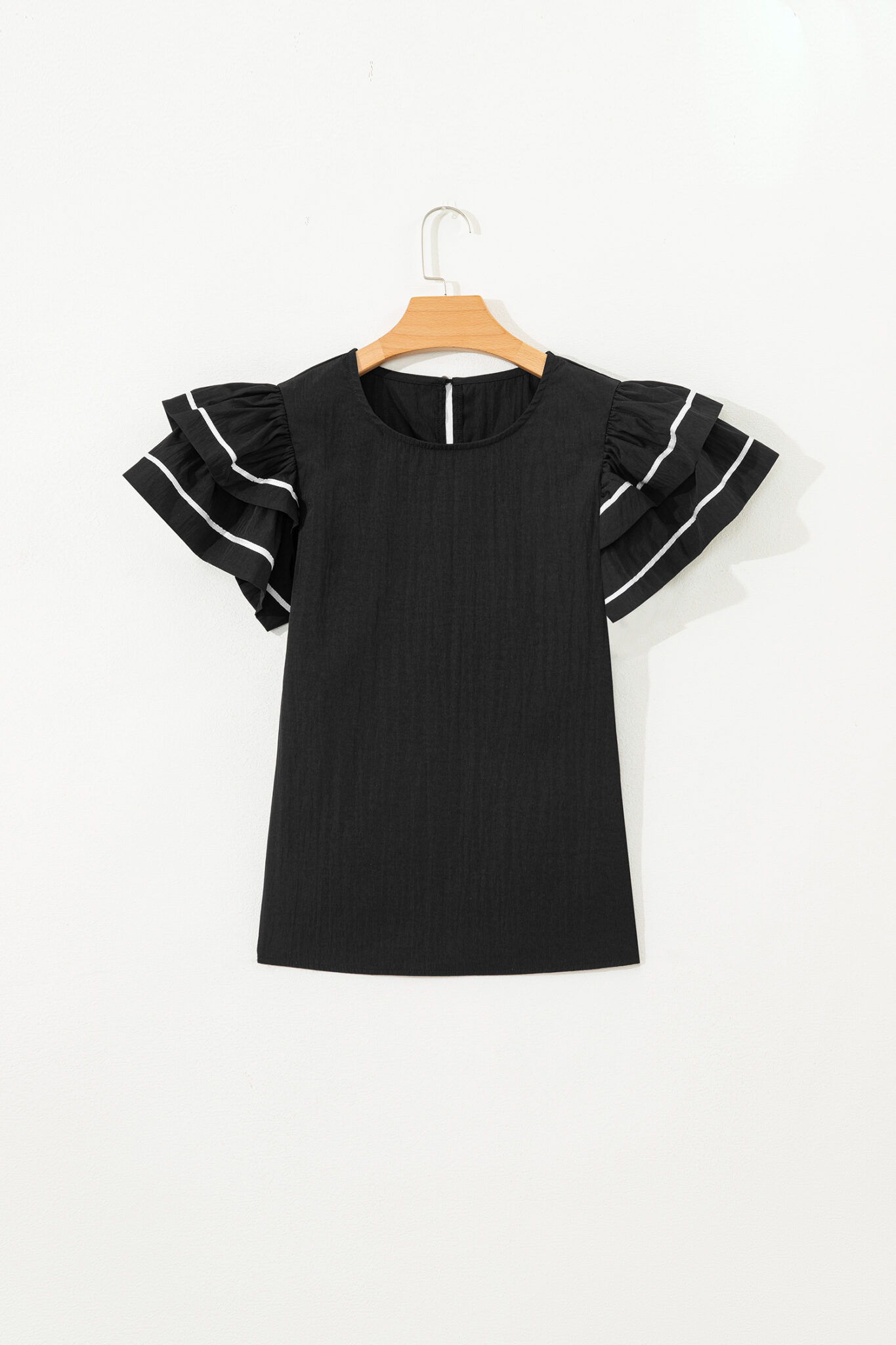 Black Contrast Trim Dual Ruffle Short Sleeve Textured Blouse