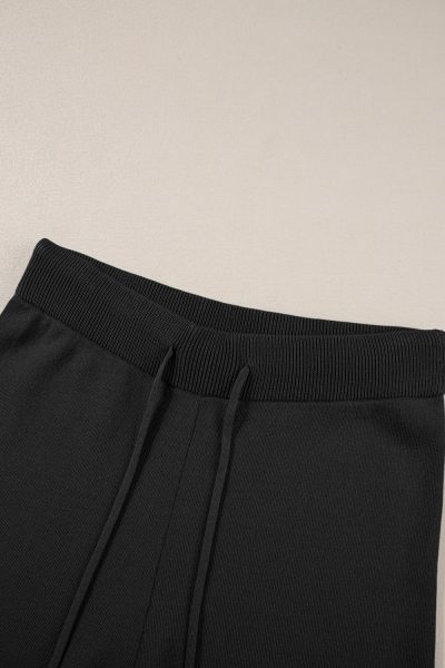 Black Contrast Trim Half Sleeve Top Drawstring Pants Loose 2pcs Sweater Suit
