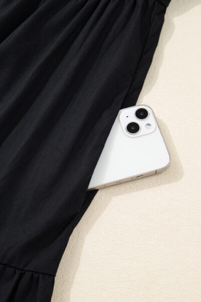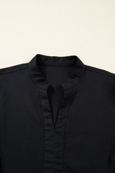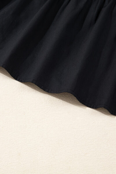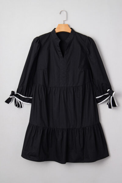 Black Contrast Trim Knot Cuffs Plus Size V Neck Mini Dress